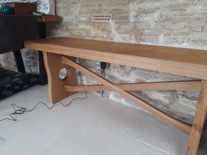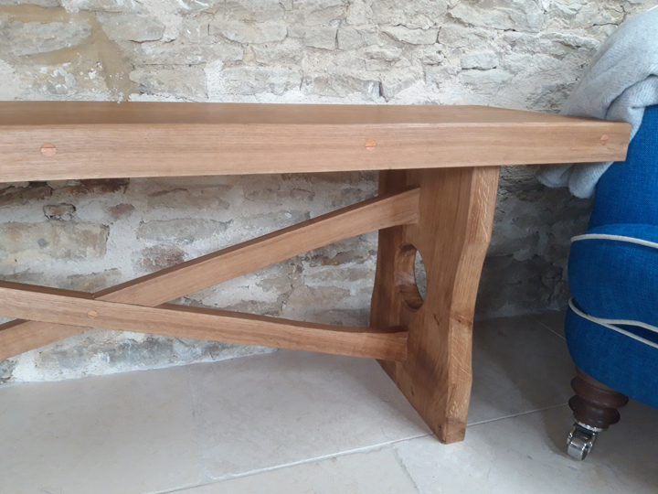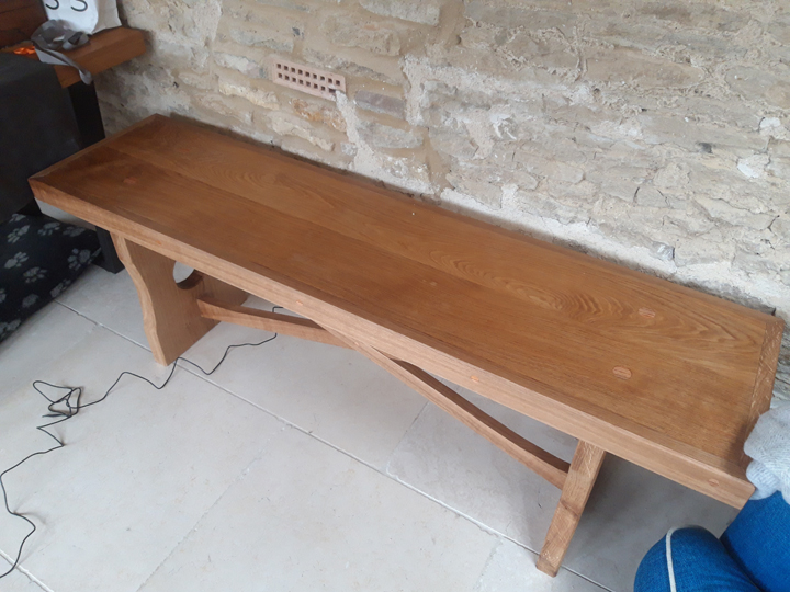 Returning to a long-standing client, Manifest were asked to take an old, very substantial piece of oak which had acted as a shelf, but was now redundant – and to form it into a new bench for the house extension.